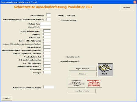 Mit dieser Anwendung ist es möglich, den Ausschuß an mehreren Produktionsstellen Schichtweise zu erfassen, zu speichern und auszuwerten. Hintergrund war meine Tätigkeit in einem Kunststoffverarbeitenden Betrieb, wo der Ausschuß nach Auftragsende händisch erfasst und gebucht wurde. Durch die schichtweise Erfassung konnte der Ausschuß mithilfe von definierten Eingriffsgrenzen reduziert werden. Später wurden noch Werkzeugreinigungsintervalle, sowie Gebindekennzeichnungen hinzugefügt. Die Ausschussauswertungen wurden Auftragsbezogen, als auch in Listenform nach Aufträgen gespeichert.
